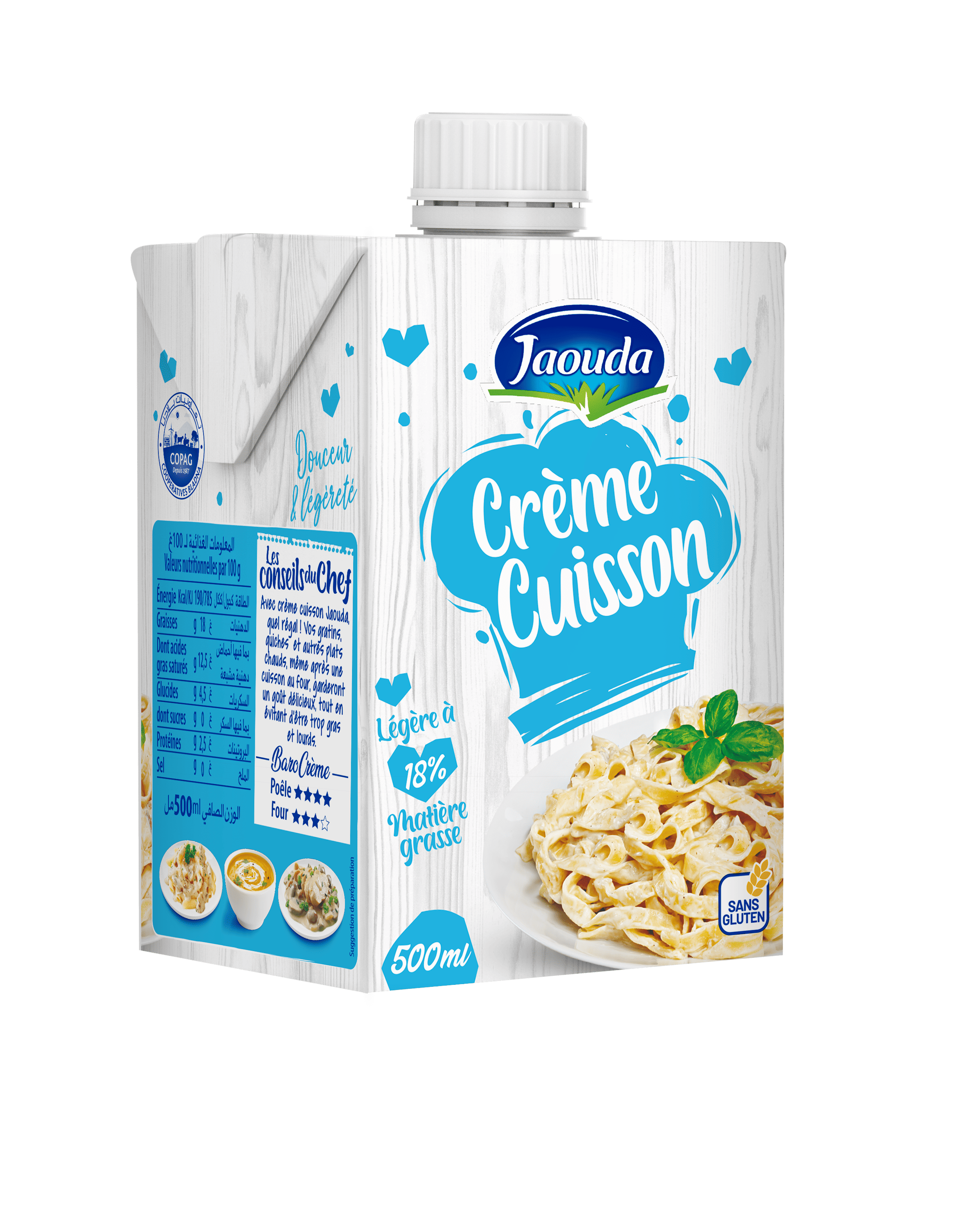 Une crème légère de lait de vache stérilisée UHT à 18% de matière grasse. La crème cuisson Jaouda vous accompagne au quotidien dans la réalisation de délicieux plats cuisinés ou de sauces onctueuses.